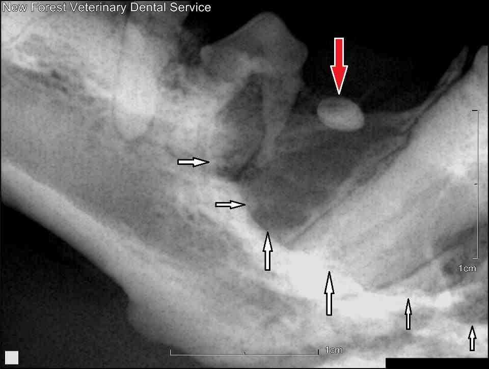 If you think a patient has a Dentigerous cyst, then we are more than happy to see them for surgery. We would also encourage vets and nurses to check young dogs at neutering procedures, to see if they have any missing teeth. Missing teeth, especially 1st premolar teeth, should be xrayed to see if the tooth is genuinely missing, or if it is unerupted. Extraction at this stage can avoid the development of painful Dentigerous cysts.